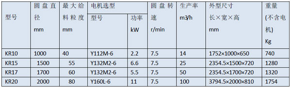 KR 系列圓盤給料機技術(shù)參數(shù)表